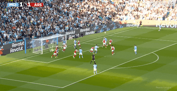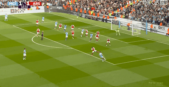 比赛第65分钟,哈兰德抢在倒地前打门帮助球队再下一城!曼城2比1阿森纳。