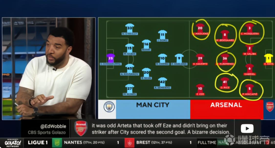 前沃特福德队长在CBS体育直播间点评阿森纳表现时表示,枪手客战曼城的首发阵容中,多达六人未能达到应有水准。